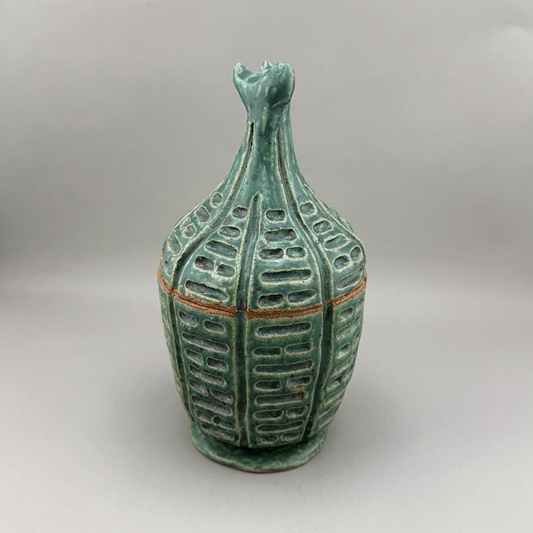 This beautifully imperfect small crackle urn was coil-built by hand.…