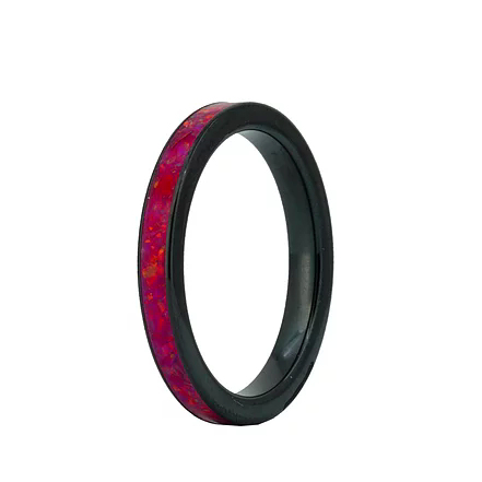 Thin & Dainty Black Ceramic Opal Cremation Ring