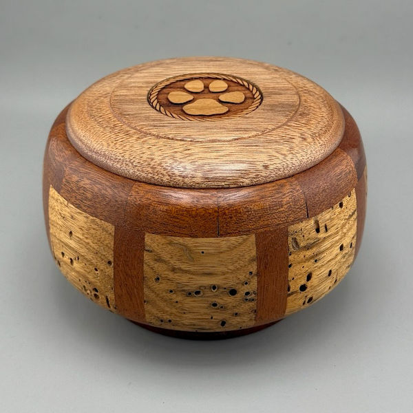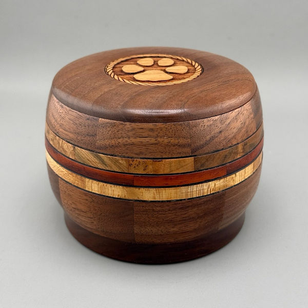 Black walnut, Maple, Red Padauk and Burl Pet Urn – 25 ci