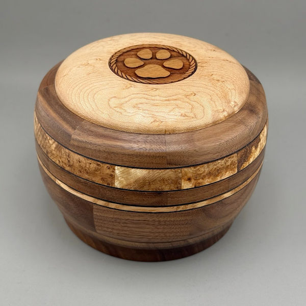 Black Walnut, Birdseye Maple and Burl Pet Urn – 45 ci