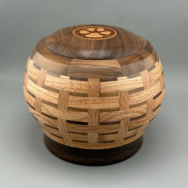 Oak and Black Walnut Basket Weave Pet Urn – 72 ci