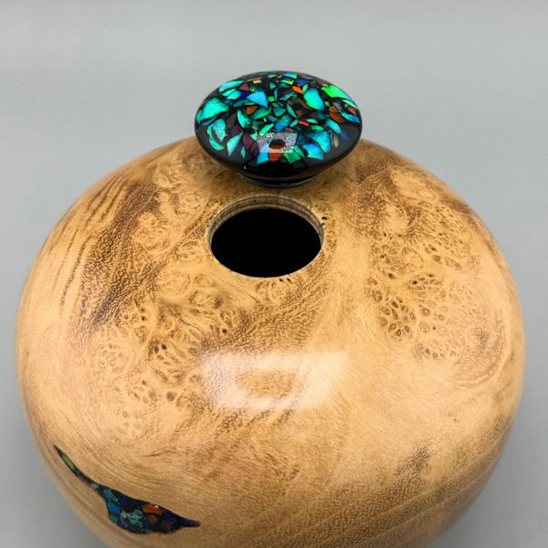 Black Locust Urn with Rainbow Opal Inlay – 34 ci