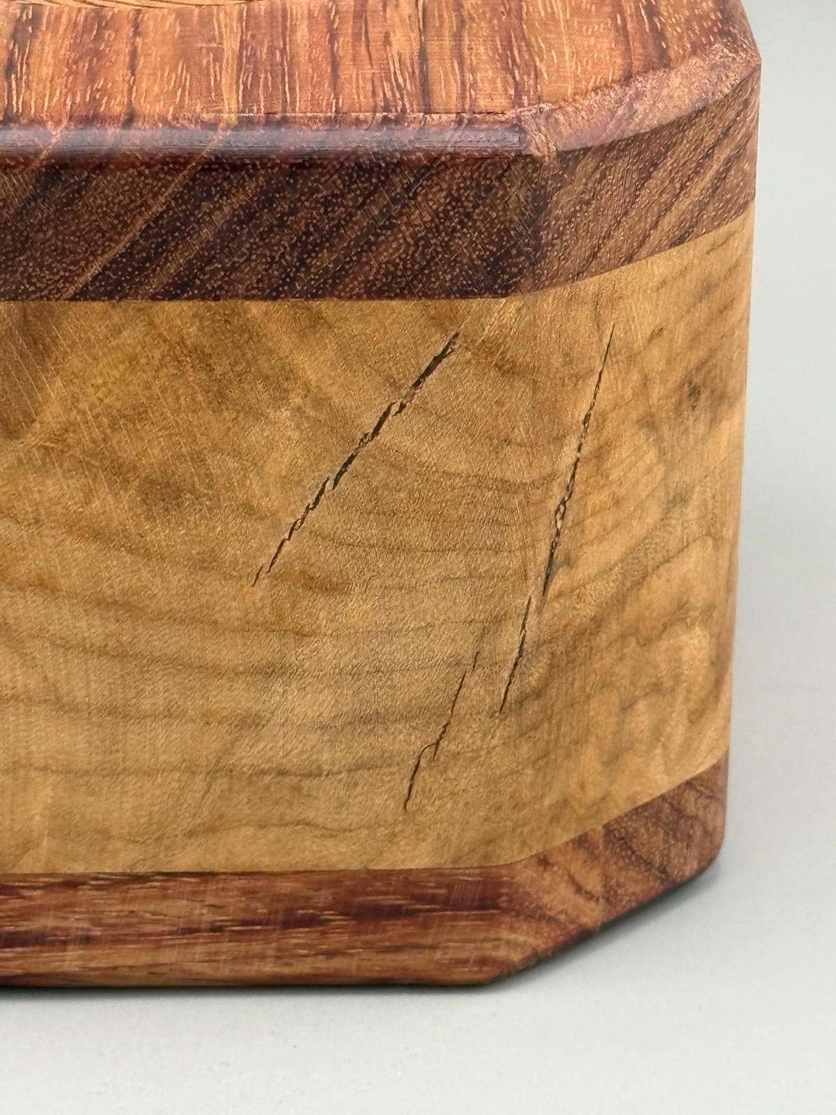 Please note: The grain and any imperfections in the wood are natural. There are 3 small cracks on one corner of this urn. They will never expand in size.