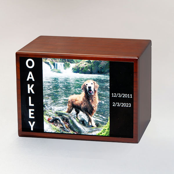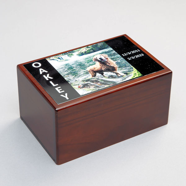 Personalize your pet’s urn with a full-color engraving of your pet’s photo.
