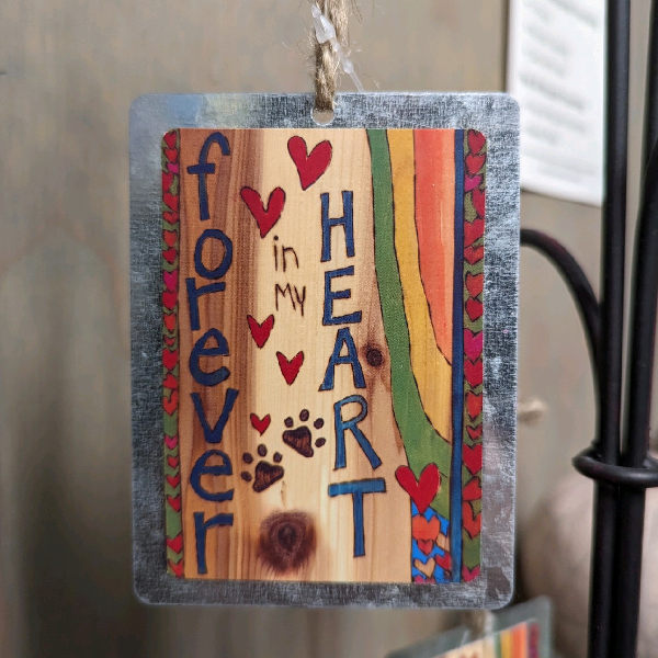 The front shows an adorable tabby cat angel with the “Forever In My Heart” graphic on the back.
