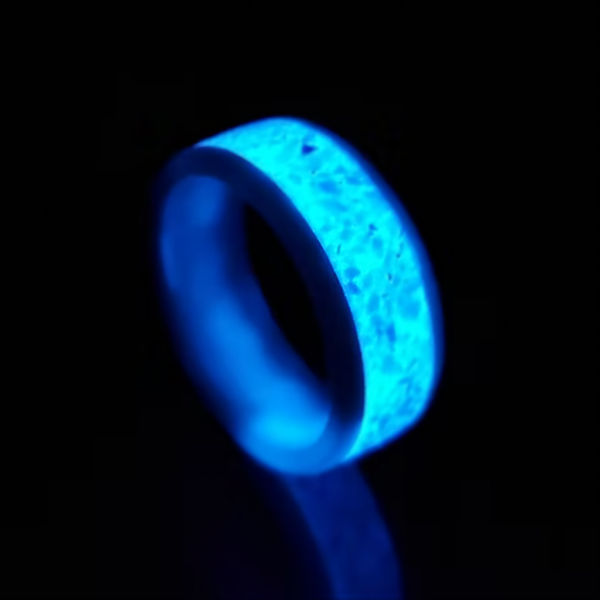 What a fun way to remember a beloved pet. A lovely black or white ceramic ring by day, and a stunning glow-in-the-dark ring by night.