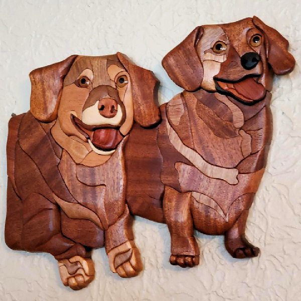 With incredible attention to the little details that make your pet unique, the artist combines hundreds of pieces of various types of wood into a charming likeness. Stained and sealed, these artworks can hang on a wall or be displayed with a stand for a lifetime of enjoyment.