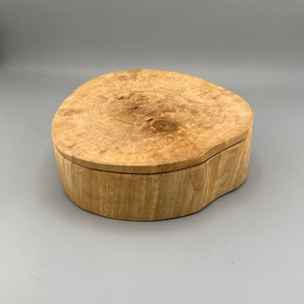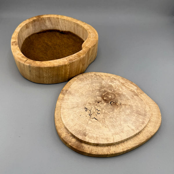 This beautifully natural urn was carved from a piece of reclaimed wood — a fallen tree found during a hike in Oregon. The stunning grain has unique spalt patterns created by a fungus that was living off of the wood when it rested in the forest.