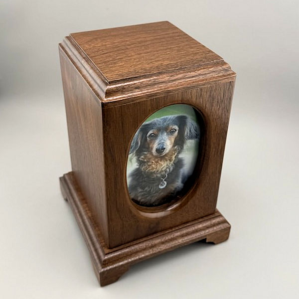 Walnut Pet Urn with Oval Photo Opening – 65 ci